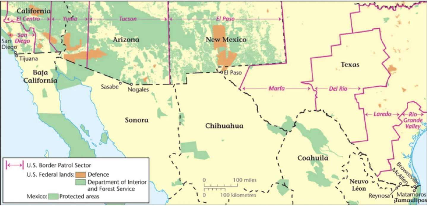 Consider that both the US and Mexico have quite a bit of federal land along the border, much of which is desert. Federal lands on the U.S. side are administered primarily by the Bureau of Land Management (BLM), but creating any special zone would likely require congressional approval and the involvement of U.S. Customs and Border Protection.
