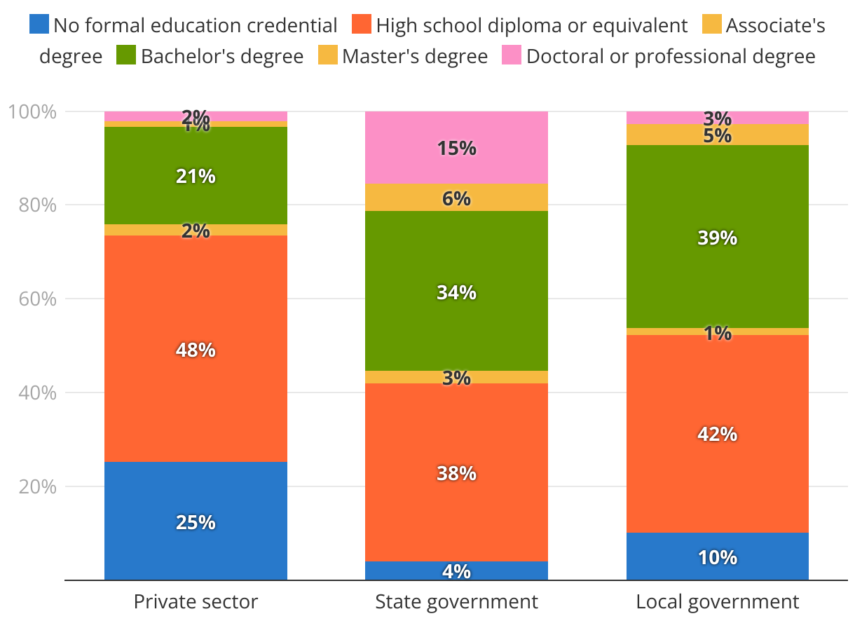 State and local government jobs more likely than private sector to require postsecondary education