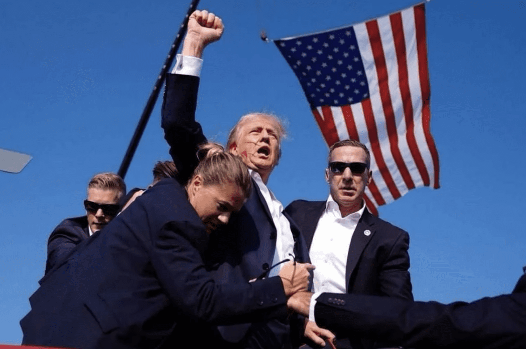 One day, three iconic images flooded our collective consciousness: one of a focused former president with a bullet whizzing by his head; another of the man on the ground shielded, bleeding, and backlit; and a third, a picture of defiance—his fist aloft.