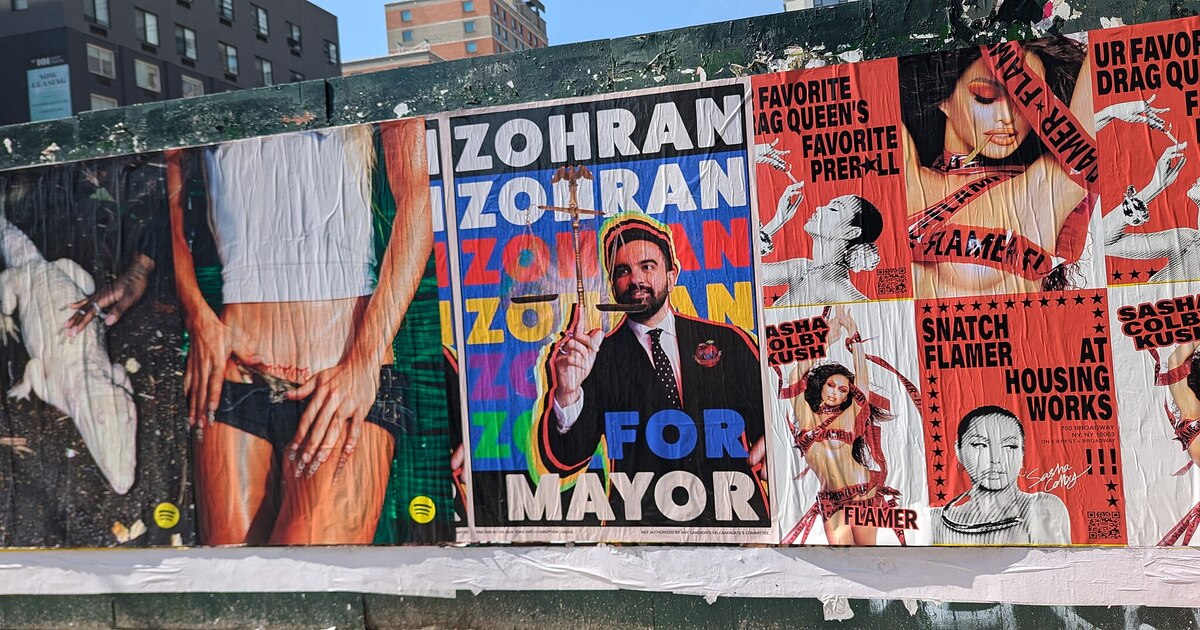"Zohran for Mayor" poster in the East Village | Wikimedia Commons